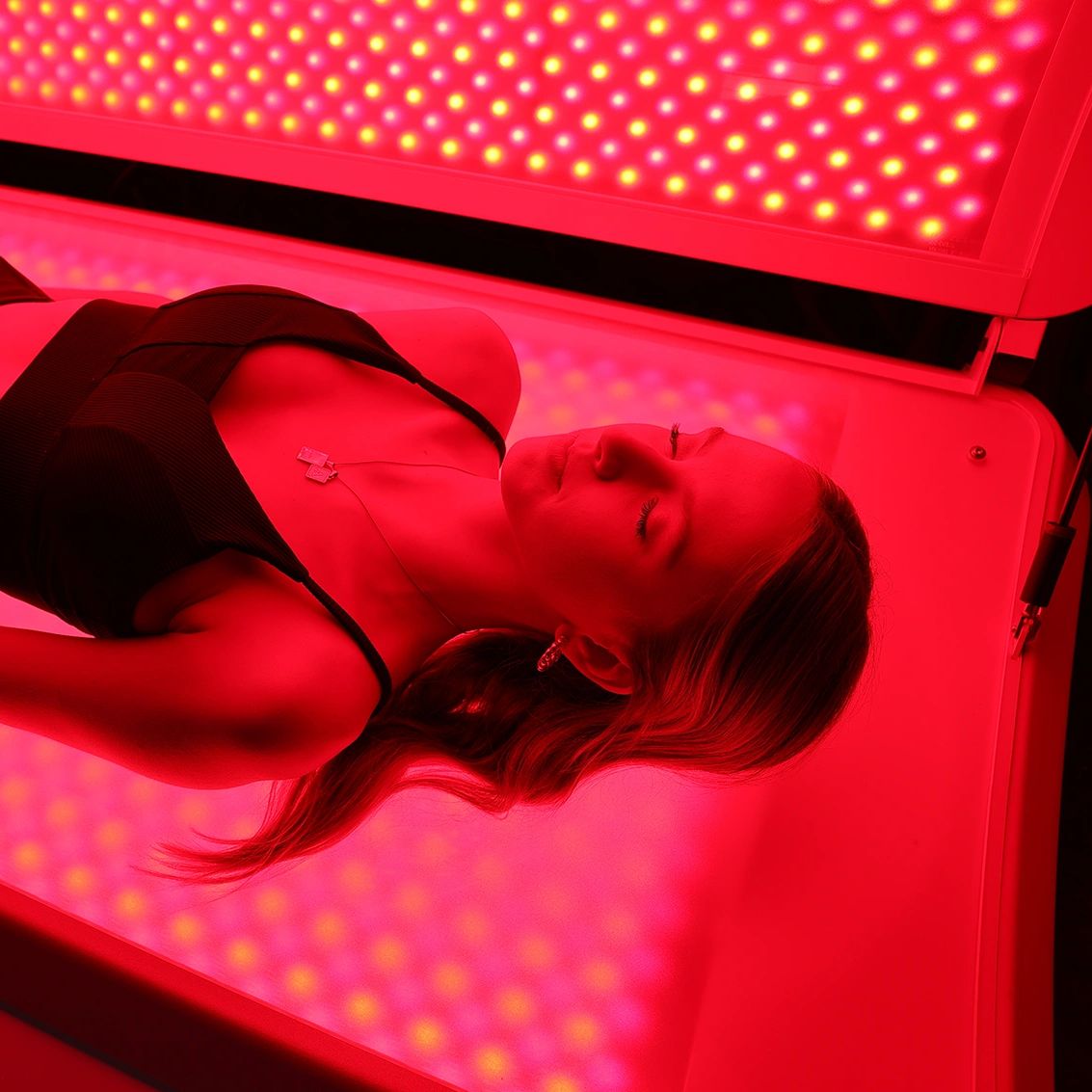Our salon features the area's only medical-grade, full-body Red Light Therapy + Infrared Light diode bed.